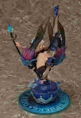 模型以海外游戏杂志全新描绘的封面图为基础制作,将她展开美丽的蓝色双翼轻盈翱翔于战场、仿佛将使出强力一击的动作还有各处上色皆尽可能地重现原画中的样貌。模型台座则是以游戏内的赛法技能台座为设计。羽毛、台座以及长枪等各处采用透明零件制作,透过光的照射更能欣赏如童话世界般的美丽样貌。高举着赛法长枪、身穿露肩小洋装的可爱造型,将美丽的关德琳带回家尽情欣赏吧!
